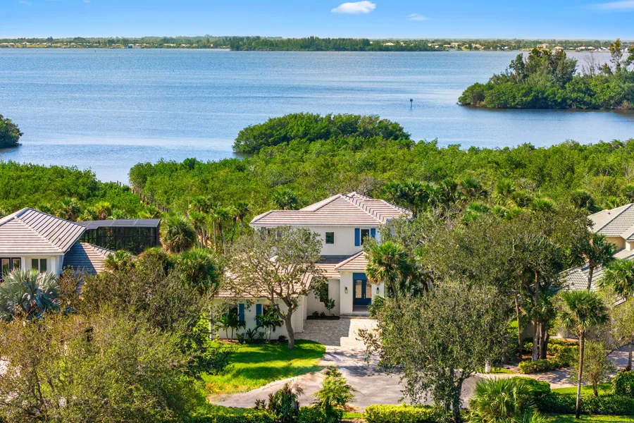 This brand-new, high-end home enjoys arguably the prettiest location in desirable Aquarina Beach and Country Club. Majestic Live Oaks line your entry to this premium address at the end of a cul-de-sac and the Indian River is your backyard. Live the resort lifestyle every day with a fun golf course, beautiful white sand beaches, a restaurant, a fitness center, tennis and pickle ball are all just a short stroll or golf cart ride away. The home is solidly built as well as open, airy and rich with natural light. Your family will have hours & hours of fun in the screen enclosed pool lanai, which also features a brand-new summer kitchen. The 3-car garage has all the room you'll need for vehicles, golf carts, sporting equipment, beach toys and more. Finishing touches being put on now, to be absolutely perfect for the lucky new owner!