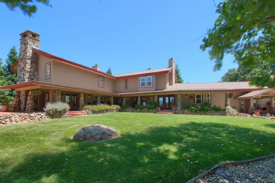 One of the most Premier Properties in Catheys Valley, Mariposa County! This 4100+/- SF home is nestled in a large meadow overlooking a seasonal pond and all on 76+/- Stunning Acres. The home features many upgrades throughout: Massive 28' high rock fireplace in the great room, custom wood floors in the great room, completely remodeled kitchen and bathrooms. There are 3 bedrooms, 2.5 Bathrooms and also patios outside to sit and enjoy the panoramic views! Breathtaking views in every direction! Recent upgrades: 2 new AC/Heating units installed in 2021. A new Nostalgie 30" Dual Fuel Liquid Propane Range with 5 Sealed Burners with Chrome Trim. The home has new cement Hardie Board siding and a new metal roof as well as 2 great wells! One of the wells had a new well pump installed in 2018 and the newest well was been recently drilled and boasts 150+/- GPM! The plan for the new well was to keep the pond full with water. The special features in this custom home are everywhere you turn! Also, let not forget the brand new 4,000 SF shop building with rollup doors!
