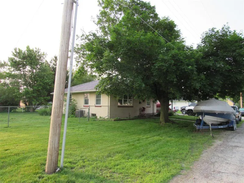 Great opportunity to purchase a property located in a nice quiet neighborhood and close to a new subdivision. This is a nice solid house with masonry block exterior walls and metal roof. Exterior is virtually maintenance free. Interior offers a open floor plan along with a newly remodeled bathroom. House has a full basement which can be utilized for storage or game room. House sits on 3 lots with a large fenced in backyard with room for a garden. Large concrete patio on the backside of the house along with a fire pit. The oversized 2 car garage is insulated which can be easily heated or cooled. Great workshop area.