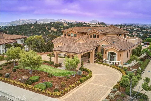 Located in Arroyo Grande. This 6000-square-foot showcase home, a testament to hard work and determination, offers five bedrooms with breathtaking ocean and dune views of the Central Coast. The master suite stands as a private oasis, boasting exclusive amenities like a formal sitting room, bedside fireplace, walk-around closet, private laundry, balconies, and a fully equipped corner office. Indulge within, featuring a fully stocked bar, billiard room, and high-tech theater. The open kitchen, equipped with top-end appliances, a center island, wet bar, and espresso maker, creates a warm setting. Step outside to a Conde Nast-style resort with a veranda overlooking a crystal-clear pool and lush landscaping. Boasting a 5 car garage and room for all the toys. This estate transcends description—schedule a private showing to immerse yourself in its splendor, craftsmanship, and the serene tranquility of the Central Coast.
