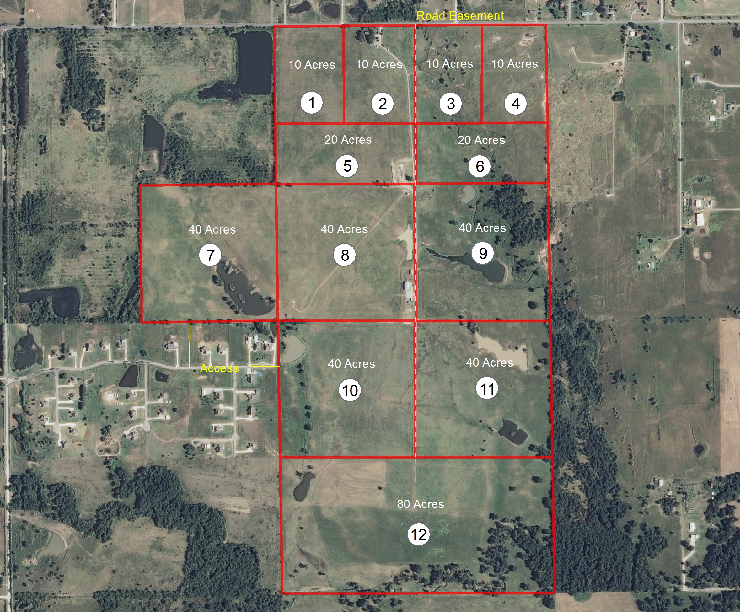 Order of Auction: This ranch will be offered in 12 Parcels consisting of 10s, 20s 40s, 80 acre tracts and then back together collectively to achieve the highest possible price. The minerals and the 40 acre Tract #13 in SW/4, NE/4 of 2-15N-11 E.I.M. Okmulgee County, will be sold separately. Cattle will sell immediately following the real estate and then equipment to follow.