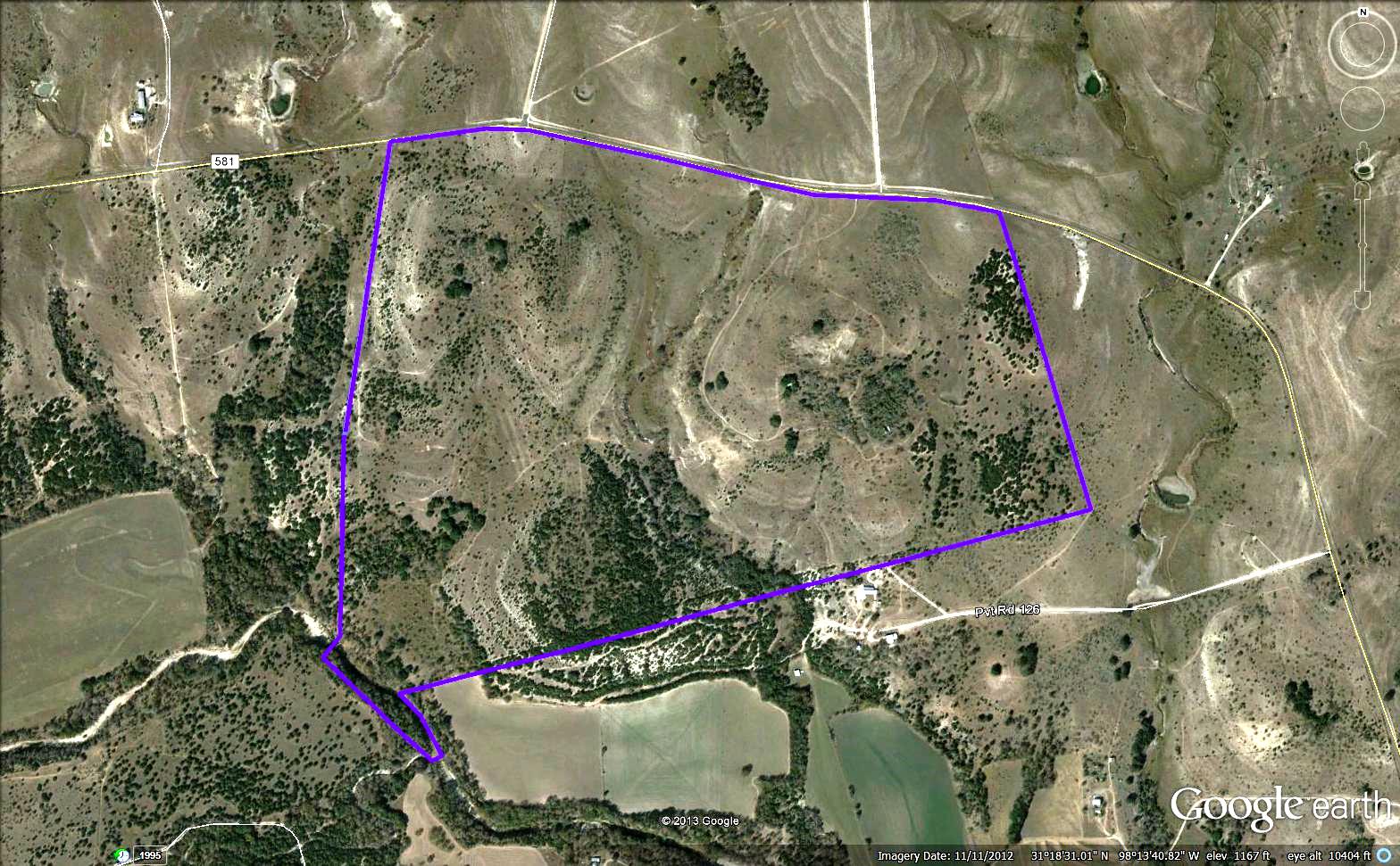 This beautiful 414 acre ranch is located on FM 581 about 4.5 miles from state highway 281, and 16 minutes north of Lampasas. This great location allows you easy access to Lampasas, Lometa, and Gatesville. Austin, Temple, and Waco are about 1.5 hours away. The ranch has about 1.5 miles of paved FM frontage, which provides easy access to all parts of the ranch.