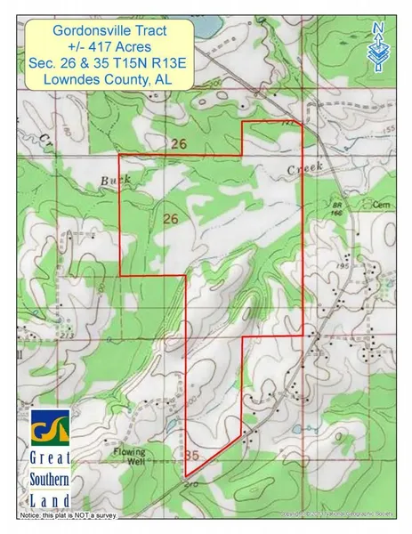 45-008 Gordonsville Hunting/Timber Tract - PRICE REDUCED! This property is located north of the town of Gordonsville in central Lowndes County as noted. It features about 1/4 mile frontage on Mary Jane Jackson Road and Mattie Lane. It features public power, a creek, and is an excellent hunting tract. Most of the hardwood timber on this tract has been recently cut with the exception of the streamside management zone timber along the creek. Some of the pine plantation has been recently thinned as noted in the photographs. There are 70 acres in the Conservation Reserve Program and details on this program will be provided on request. A map showing the location of the CRP acreage is in the PDF Downloads section.
