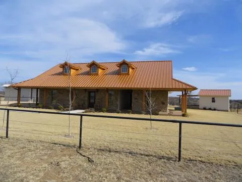 Beautiful new 3 BR-2.5 BA home with excellent farm and ranch land.