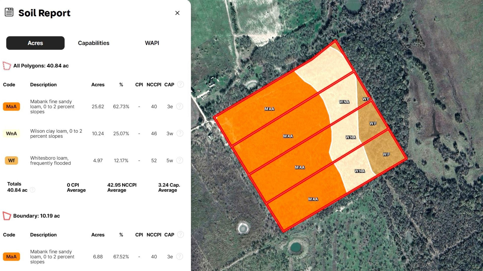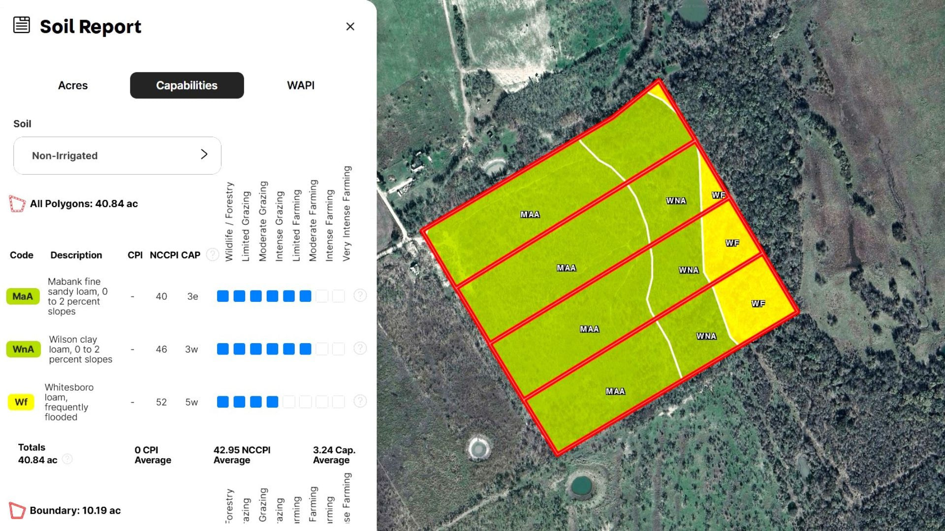 Search for detailed parcel information including; Elevation & Vegetation Maps, Ownership Information, Detailed Parcel Information, Crop History Map, Soil Survey Productivity Data, and more.