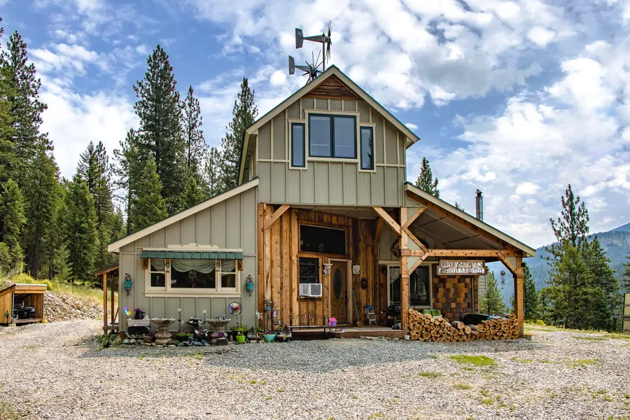 AWESOME WELL-BUILT HOME NESTLED IN THE MOUNTAINS OF NORTH IDAHO! Completely Unique custom-built home on a 42.6 ac. Timbered, 2000ft Hwy 2 frontage, 2000 ft. Kootenai River frontage remote property with several building sites and spectacular Views. Seller is a retired custom builder / developer craftsman construction and finishes, estimated 950 sf 'Pole Barn Frame Style' currently finish 1bd / 1 bath downstairs with full plumbed and wired unfinished additional 2bd. / 1 bath upper lever. (Potentially 3bd, 2 bath residence / office / community building / etc.) State of the Art solar system off-grid package :30 kw lith. iron phosphate battery storage /20 -325watt /48-volt solar panels and 2-1600 w/ 48-volt wind turbines with backup generator, 22 gpm well. This property has unlimited potential, a remote hide-a-way to a private RV / tiny house / family vacation retreat or whole family compound. Frontage on Hwy & River, 42ac timbered, quite privacy, sitting on the Idaho & Montana border, bring your dream and make it happen.