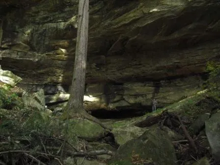 Although the volume of water in this creek is large and we are aware of fish being caught, in some places the creek partially dissapears underground and reappears from out of a rock due to underground caves. Much of the property is in a gorge between cliffs that feature rock houses and small caves. Two waterfalls also fall into the property.