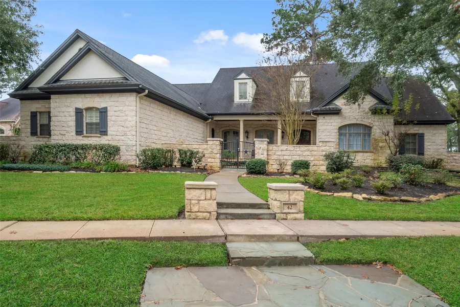 Coming Soon - Breathtaking views of double fairways & a tranquil water feature on the Forest Course of Kingwood Country Club define this exceptional home in prestigious Kingwood Greens. Enjoy outdoor living from the oversized covered patio w/summer kitchen, pool, & golf course backdrop. This custom home showcases quality craftsmanship & thoughtful details throughout. The striking elevation features solid limestone exterior walls, while the interior offers elegant hardwood floors & numerous upgrades throughout. The chef’s kitchen is ideal for entertaining. Spacious rooms & a flexible floor plan include a private study, formal dining, light-filled family room, & secluded primary suite w/walk-in shower, soaking tub, & enormous closet. 2 secondary bedrooms downstairs share a Jack-and-Jill bath. Upstairs features a sauna, huge game room, large 4th bedroom w/bath & media room - either GR or me...