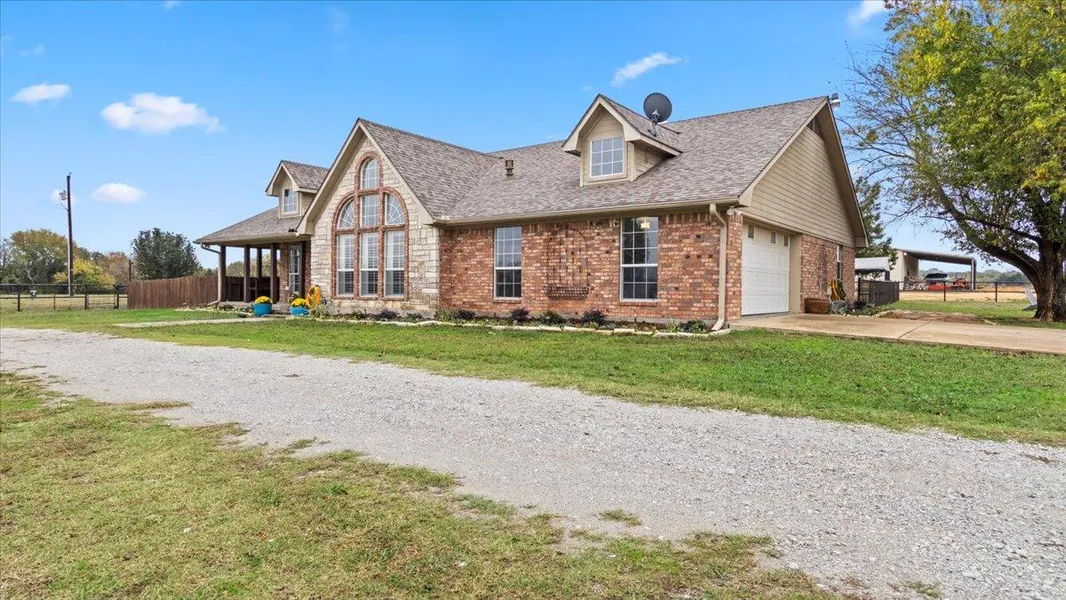 Looking for a great place for your kids and livestock close to town, take at this home on 26 plus acres just minutes form Sherman or Denison. The property features gated entrance, long driveway leads to the private setting for the custom 4 bedroom 2 bath home with open concept. Dual living areas, both with a gas fireplace are divided by the kitchen and dining. 4 bedrooms share an updated bath with walk-in shower on one side and the master with master bath is on the other side. Kitchen has new granite fresh painted cabinets and stainless appliances. property has gentle slop to the front with a large tank. Great 40 x 60 shop with 20 ft shed features 3 12 x 12 stalls with runs. 2 wells This is a truly special piece of ground located in one of the hottest areas in Texas!!
