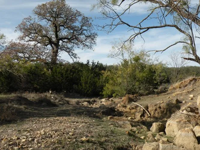 Several hills make interesting topography and very pleasing scenery. A seasonal creek, Wild Cow Branch, runs the ranch. It has good rocky creek bottoms and rock formations.