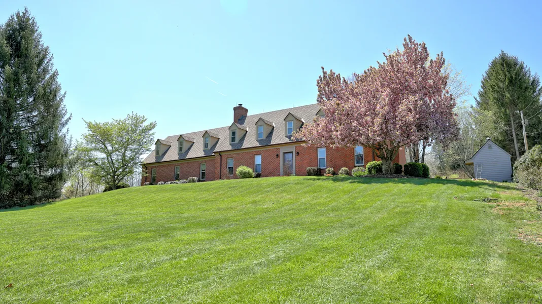 Lovingly, custom built and cared for seven bedroom, five full bath, brick Colonial with 2-car garage. This stately home is situated on 2 acres surrounded by trees for privacy. Very large backyard with several raised bed gardens already in place. This Colonial Williamsburg design has character and elegance throughout with formal living room with fireplace & crown molding, spacious formal dining room with built-in corner cabinets, gorgeous brick flooring in spacious eat-in kitchen and family room with fireplace & built-in bookshelves as well as sunroom with wood burning fireplace and built-in smoker. Bedroom & full bath on main level and hardwood flooring throughout with custom wood/trim work. A beautiful stair case leads to primary bedroom with enormous bathroom, two additional bedrooms and hall bathroom and attic access to vast amount of storage space. Back staircase leads to a sitting a...