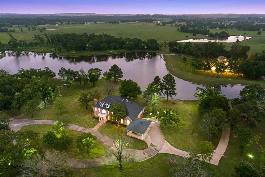 Inside and out, every turn of a corner on this stunning, one-of-a kind property features another treasure. Entertain friends and family with fishing on a 7 acre lake, tennis on a lighted court, and beverages on a lakeside patio. This resort-style estate boasts a multi-use game room, temperature-controlled wine room, and sprawling ballroom with a 9 ft. projection screen. Space won't be a problem with the 5 bdrm, 4.5 ba. main house and the Diamond Saloon guesthouse, each with a fully appointed kitchen. Plan to host family events with opportunities for rest, relaxation and fun for all. Miles away from the stress of city life, this exceptional estate has it all.