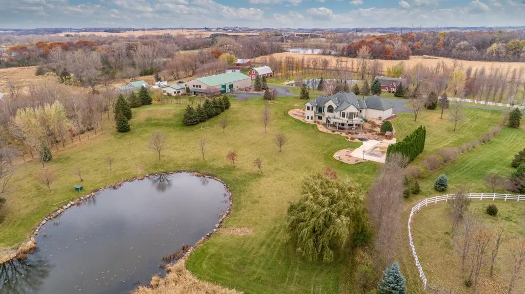 43 Acre private estate in south metro. Custom built one story with in-ground pool & much more! This home has the perfect mix of formal elegance & casual comfort to accommodate modern living plus provides a wonderful flow floor plan. Walls of picture windows throughout overlooking the large pond from the living room, master bedroom & bath. The lower level walks out to the beautiful patio & in-ground heated pool. Fantastic 6 car auto show room with full exercise room on upper level. Gorgeous 1248 sqft entertainment facility with gas fireplace, bathroom plus loft that is set up as a billiards room. The over 10,000sqft workshop has 1,700sqft of finished office space with 2 bathrooms. The main portion of the shop is heated 6,000sqft & has multiple bays to suit your needs. There is also secure non-temperature controlled 3,200sqft space to store equipment, toys & more. Conditional use permit in place to run a business. Auto enthusiasts could house up to 30 cars on this site.