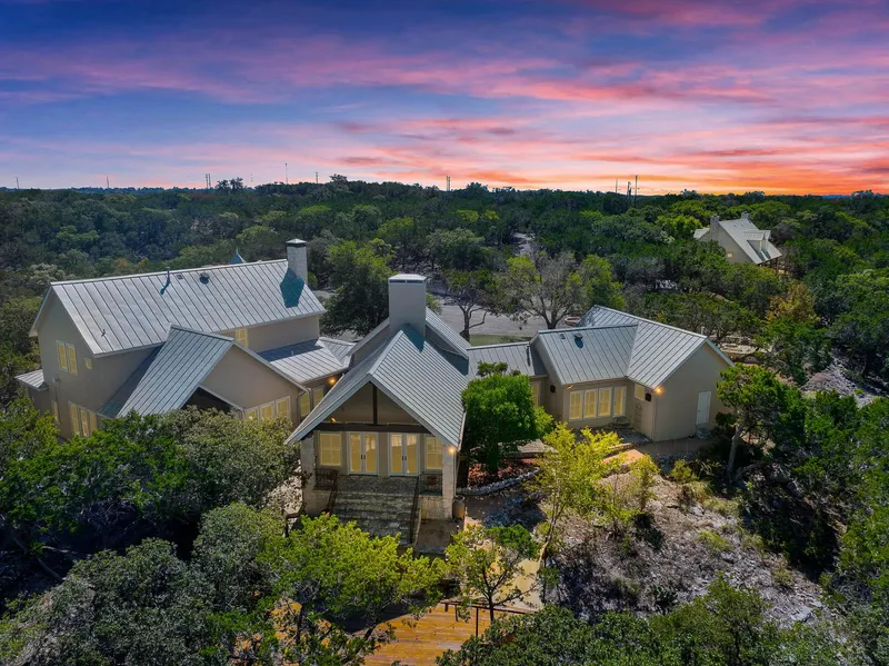 Luxury in the Hill Country is best defined here with the impeccably placed custom 5,880+/- sqft home and 1,275+/- sqft guest home on 43+ acres. Enter into the park like setting with both sides of Quinlan Creek, dammed up for enjoyment and prepared for entertainment or quiet relaxation. Travel up the ravine with a multitude of hardwood trees, including countless Blue Oaks, and cross the charming bridge to your estate literally in the hills. Countless details can be found with unique doors, beams, flooring, and outdoor living amenities. Its the feeling of being remote in the mountains, yet 15 minutes from everything you need in town with pavement the entire way from your driveway. Come see how rustic, lavish living in the hills feels for you.