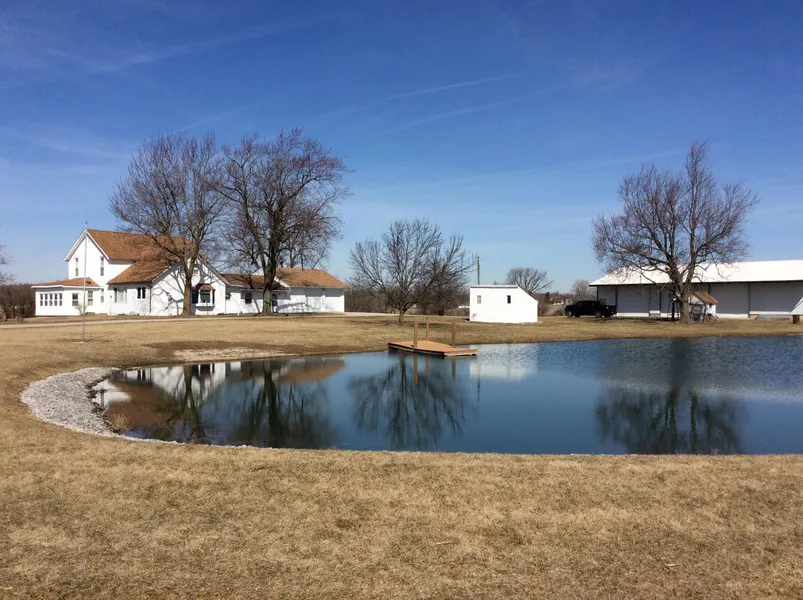 Tract 1: COUNTRY PROPERTY with 4+/- ACRES, POLE BARN & GORGEOUS POND! Home features 3-4 bedrooms, 2 bath, open Kitchen, Dining & Living Area. Bedrooms are split between main level & upstairs. Nice Sun Room and 2-Car Attached Garage! Steel Framed, 80 x 40 ft. Pole Barn features concrete floors & 3 overhead doors! Gorgeous pond with pier ready to be enjoyed this summer! Purchase this tract individually or in combination with the remaining 39+/- acres for your 43+/- acre homestead!Propane tank not included in the sale.