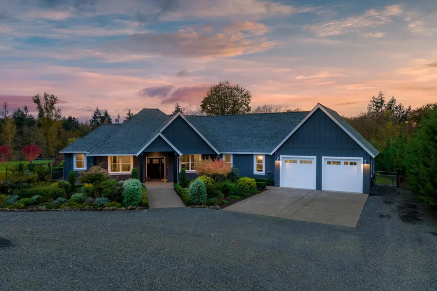Opportunities abound with this pristine, turn-key estate on 43 acres located at the gateway to Wine Country near wineries and Champoeg State Park. Formerly a horse facility, this property has been completely transformed and is currently being used as an event venue. The equestrian will enjoy a 72x156 indoor arena with hay/shavings storage and an attached barn that could easily convert back to 12 12x12 stalls. The arena has full power, plumbing, a wash rack area and grooming stalls. Adjacent to the barn is a 36x48 shop with power that could also convert back to 5 stalls. Custom built in 2017, the residence is an ideal one level home offers an open, well laid out floorplan, vaulted ceilings and hardwoods throughout. Chefs will enjoy a gourmet kitchen with 6 burner gas range, stainless steel appliances, walk-in pantry and huge island that is perfect for entertaining. Primary suite has its o...