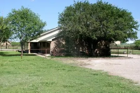 Horse barn 4075 with two large rollup doors and one small rollup door, 3 stalls, tack room and living quarters 2240 with shower, sink and toilet. Adjoining 4023 overhang. Front covered area 2016. Drover hydraulic horse walker. 7 stall steel and concrete dog pens. Steel & sucker rod catch trap with 19.5 x 40 open end shed. Outside arena 250150 with roping chute and return alley.