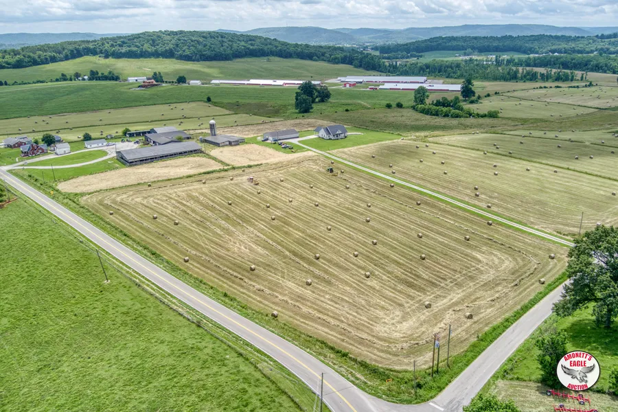 One of the premier properties to hit the Auction block in 2025, with the utmost honor we proudly present the Mark Massengale Estate. A remarkable 430 +/- acres with a custom home, a large livestock barn commonly referred to as the "Shipping Barn" and multiple tenant homes. These iconic farms offer level hay fields, rolling pasture and woodland. The majority of the farms are tillable but have been used for hay and cattle. This 3 bedroom 2 bathroom custom home was constructed in 2021 and offers a farmhouse feel with contempor...
