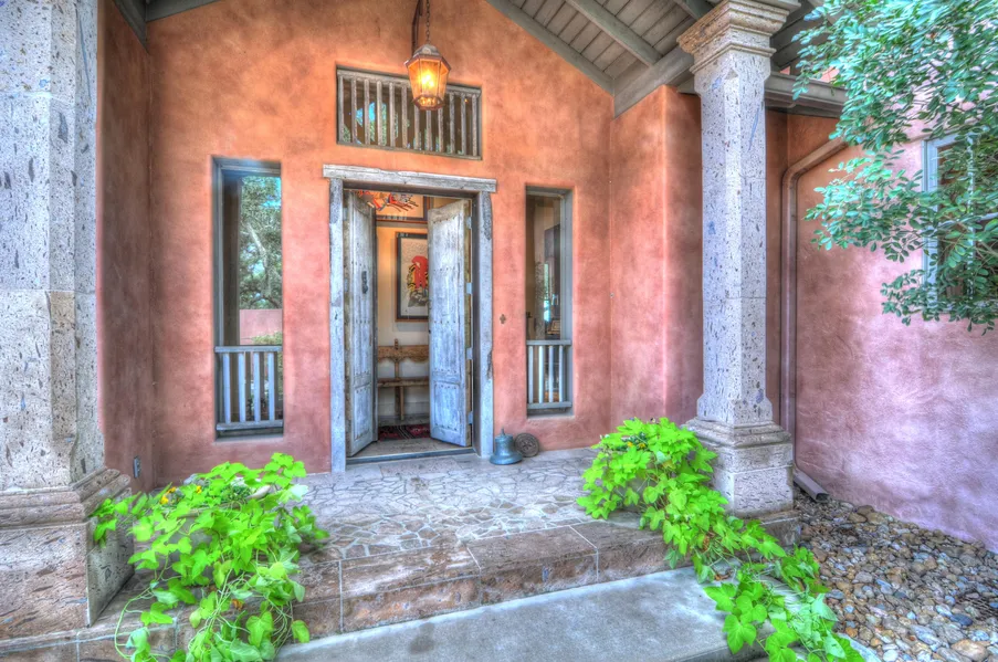 Meander up a winding private drive to this peaceful 20 acre Equestrian Property. Spectacular Home, Great Horse Facilities with Dressage Arena, Custom Lakota 48x36 4 Stall Barn, Hay Barn, Cross Fenced Pastures. Home offers vaulted ceilings, hand cut stone floors, old Mexican wood doors and courtyards reminiscent of San Miguel de Allende. Relaxing fireplace on the 30x10 screened porch located on a sun filled ridge top with gorgeous views. Guests can enjoy the well appointed 1/1 detached cottage.
