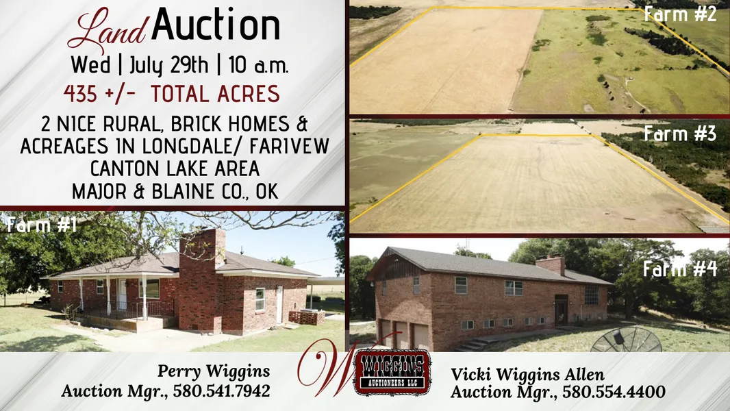 Order of Auction: Farms will be individually only. Minerals: Do not sell. Possession: at closing. Note: Announcements made day of auction take precedence.