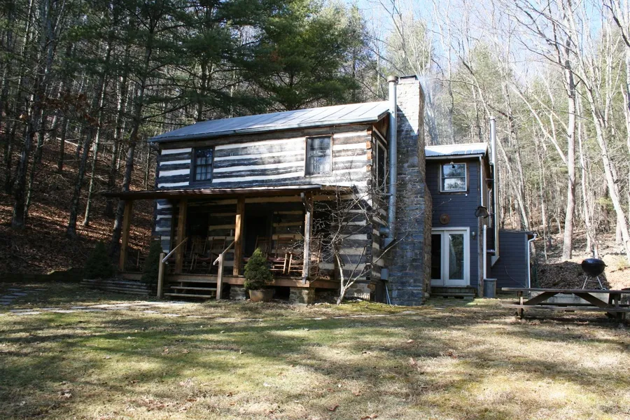 This 44 acre retreat is improved with a main log cabin, second log cabin, learning center, office over root cellar, two sheds, and 3 massage cabins. The lodge log cabin received an updated addition in 2008. The house is approved for guest use with an inspected kitchen and an extensive fire alarm system. The smaller log cabin was moved to the site and erected over a cinderblock basement housing the kitchen and bathroom. The main floor has a sitting room with a sleeping loft.