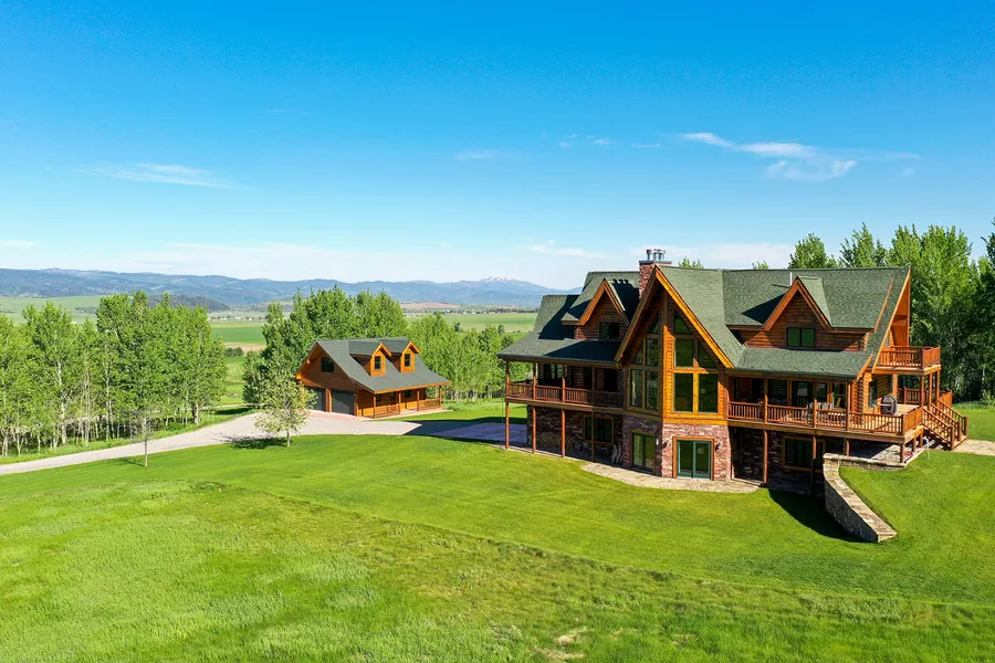Your search for the perfect mountain retreat is at the end of the road where this family lodge on 44 acres overlooks scenic Star Valley and abuts National Forest. The Kuhns Bros log home features warm and inviting gathering and living spaces including a great room with a towering stone fireplace, rough-sawn barnwood flooring and large windows that provide abundant light and panoramic views. The country kitchen and dining room has on open design that extends to a large wrap-around Trex composite deck. Kitchen features include a 1920s antique stove with gas cooktop and 3 electric ovens, two sinks, granite countertops, alder cabinets, red spruce breakfast bar, self-closing drawers and a large walk-in pantry. Also on the main level is an office that could serve as a sixth bedroom, and a spacious family room, which also opens to covered decks on both the west and east side of the home. More t...