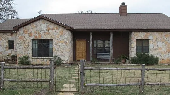 Great opportunity to own 40 plus acres with Southfork Guadalupe River, a classic Hill Country rock home with soaring ceilings, expansive rock fireplace,breakfast bar, open living, dining and kitchen area plus a recreation room, or second living area. The large country kitchen welcomes family and friends to gather. Spacious master offers a screened sleeping porch with lots of windows to enjoy the bluff views of the Guadalupe River valley, and wonderful outdoor living space for entertaining. A rustic two bedroom one bath bunk house with its own kitchen and living area, a two car garage, chicken coop and shed for horses or other livestock. This is the perfect family compound to enjoy all kinds of recreation at a reasonable price.