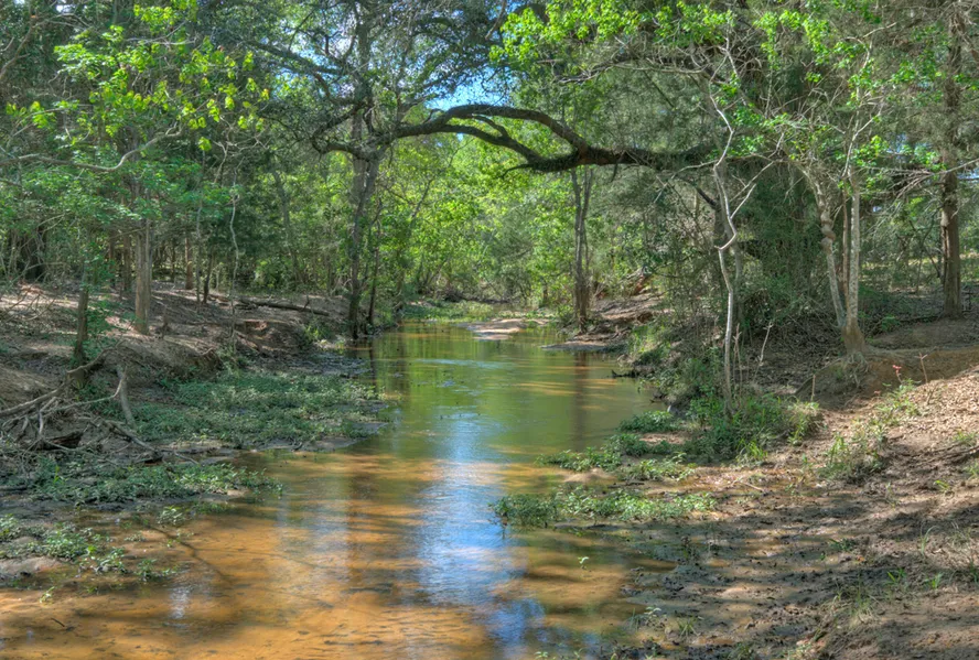 This exceptional 44-acre ranch property, conveniently located in Austin County's countryside, offers a great escape that is easily accessible from Highway 71 or Interstate 10. Just an hour from downtown Houston and 90 minutes from Austin, the property's beautiful landscape boasts magnificent live oaks and over 1,346 feet of Schweiner Creek, creating a park-like setting.