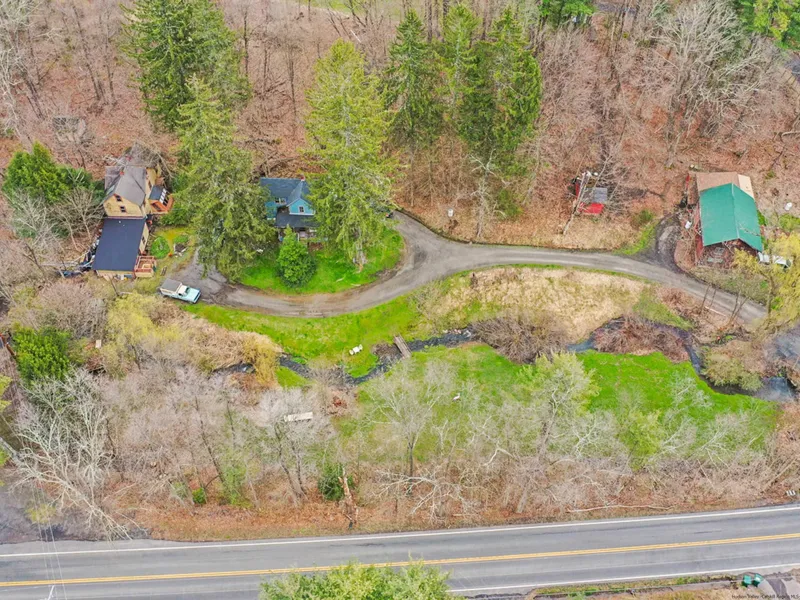 Multi-dwelling compound, artist retreat, investment property, or live in one and rent the others. Many possibilities for this idyllic location, close to High Falls, Mohonk Mountain House, perfect for all great things outdoors. A stream runs along the front of the property. The property is fully occupied. The yellow house is a combined art studio and one bedroom apartment. The blue house has 2 bedrooms and 1 bath and a basement and attic, new heater and roof, Current rent is $850. The barn has 2 apartments each is 1 bdrm/1 bath. Both are rented. There are no leases in place for any of the units. Current rents are wildly under market value. The structures need some work and updating, but well worth it. Opportunity for investment and/or live-in. Spectacular location!