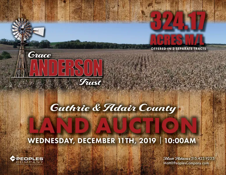 Farm Program Information: Farm Program Information is provided by the Adair and Guthrie County Farm Service Agencies. The figures stated in the marketing material are the best estimates of the Seller and Peoples Company; however, Farm Program Information, base acres, total crop acres, conservation plan, etc. are subject to change when the farm is reconstituted by the Adair and Guthrie County FSA and NRCS offices.