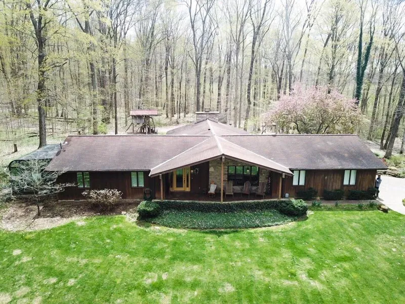 Hunters paradise! on 46 acres of beautiful woodland with 1 acre pond. Adorable log cabin overlooks the pond. Main home is a cedar ranch style with 2 car attached garage, 3 bedrooms, 2 full bath, vaulted ceiling in family room with a gorgeous stone fireplace to the ceiling. Fireplace is currently gas log but could be converted back to wood burning. Family room also has wood beams on the ceiling and walks out to a deck with a view of the pond stocked with gold fish and beautiful gardens. This home also features a sunroom with a hot tub, and formal living and dining room. There is also 20X25 workshop with a lean to and utilities! This home is very energy efficient with geothermal heat and a/c.