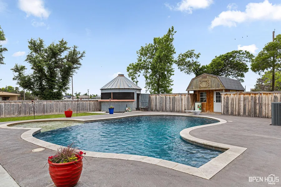 Downstairs, youll find a 600 square foot basement that provides additional living space and storage. The basement is perfect for a home office, a game room, or a home theater. The metal roof adds durability and longevity to the home, while the outdoor amenities are truly breathtaking. The gunite pool equipped with a propane pool heater is perfect for swimming and relaxing, while the silo pool bar adds a unique touch to the outdoor space. The pool house building is perfect for storing pool equipment or for use as a changing room. The outdoor pergola and back porch area provides a shaded area for outdoor dining and relaxation, while the outdoor lighting creates a beautiful ambiance at night.