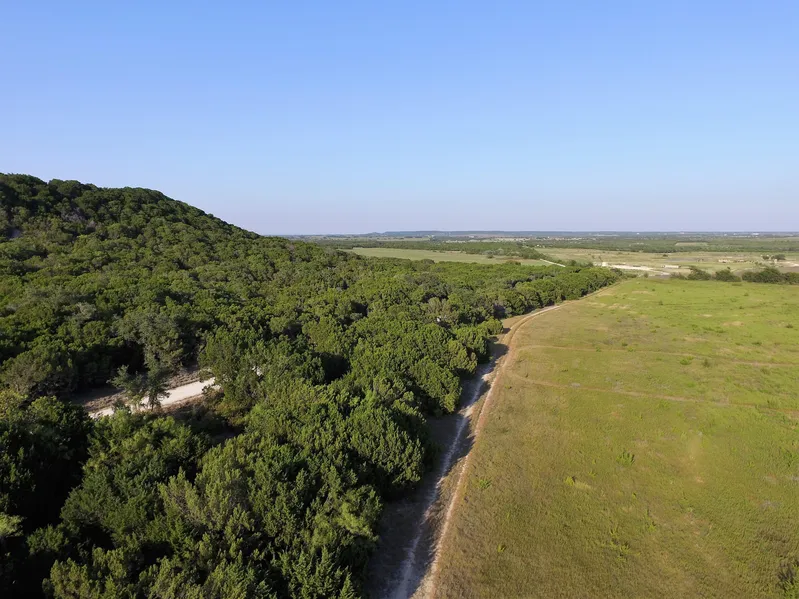 Located in Erath County near Chalk Mountain this beautiful 451 +- acre ranch has many possibilities. There are lots of potential building sights that feature stunning views. Because CR 451 runs through the middle of the property it could easily be divided into smaller tracts. For the hunter there is a great mix of heavy cover, around 185 acres of open pasture and great elevation changes.