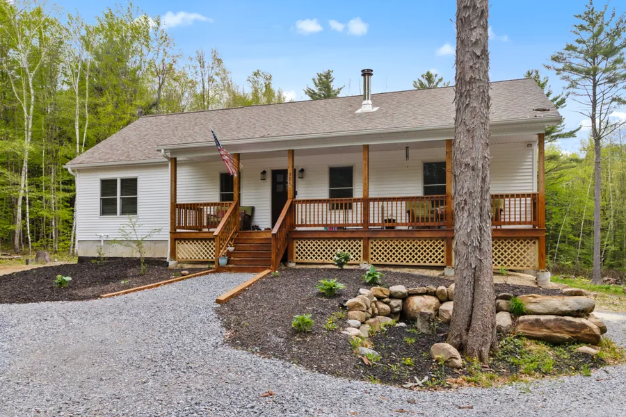 Private Adirondack Escape on over 7 acres! This 2021 single-story home offers a perfect mix of comfort, space, and charm. The open floor plan features natural finishes, hickory cabinets, a farmhouse apron sink, large center island, and a pot filler over the stove—ideal for both daily living and entertaining. The spacious great room brings in plenty of natural light. A front porch welcomes morning coffee, while the finished basement with egress adds extra living space, storage, and an oversized two-car garage. Surrounded by mature trees and natural landscaping, this private retreat is less than a mile from Jenny Lake and Hunt Lake, and under 30 minutes to Saratoga Springs and Lake George. See docs for upgrades.