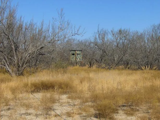 46.24 Acres with good hunting cabin as well as a travel trailer, 5000 watt generator, furnishings include chairs tble and beds, deer blinds, deer feeders& Hog Trap. Good buy. Tractor does not convey with property at this price. Community Water system = approx $200 per year. Taxes $1638 Estimate. Verify City/school/taxes/restrictions.