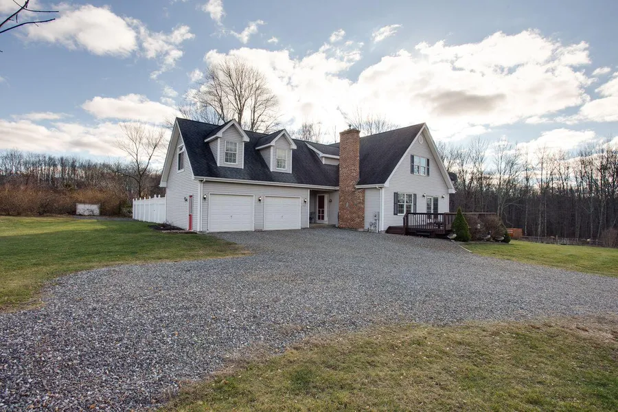 Enjoy your country living retreat or hobby farm! 2,754 sq ft 3 or 4 bedroom cape on 5.94 acres w/outdoor hot tub & swimming pool offers plenty of elbow room for outdoor entertainment & recreation. Quality hardwood floors, fireplace w/pellet stove insert, kitchen w/breakfast bar, Peach Tree windows, tiled bathrooms, stainless steel appliances, sliders to front deck, spacious finished lower level can also legally be another unit for rental, in law apartment or utilized for home business (all materials are on site ready to finish studded downstairs full bath), gorgeous landscaped grounds, oversized 2 car w/bonus room, barn, generator hookup, underground dog fencing, hot tub & pool have their own decks w/privacy fence, zoning allows horses, cows, sheep, goats, chickens, 200 radio towers. Plenty of space for gardening (farm stand sales allowed), Home business uses allowed; sale of arts & craf...