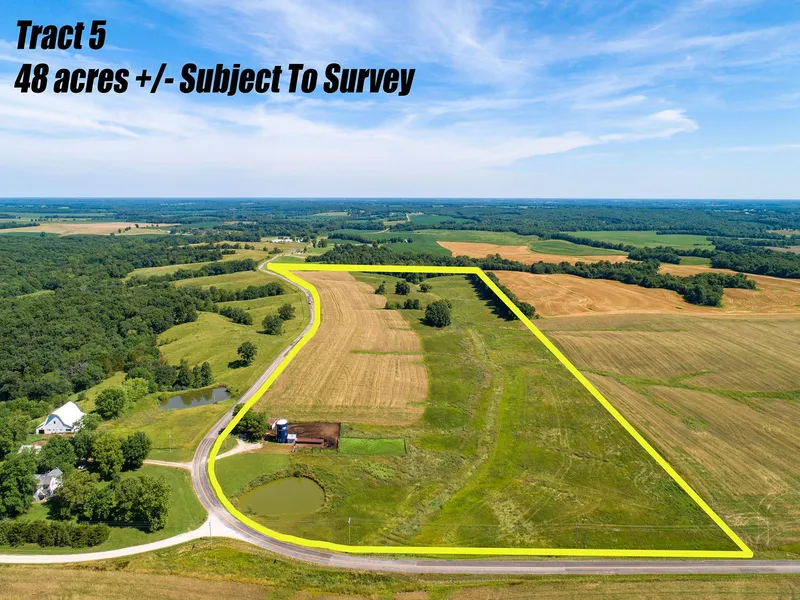 Farm Tour day will be August 20th, Auction will be held August 30th both live and online bidding will be permitted. Absolute Auction. Tract 5 is 47.39+/- gently rolling open acres. 16+/- of which are currently in tillable production and 30+/- are currently being used as hay production. There are several great home sites along the 5/8 mile of Hwy H blacktop frontage as well as a possible lake site. Tract 5 would be a great place for a horses, cattle, or other livestock. Electric as well as Lewistown water is available. For additional information, please contact Dan Stokes at 314-971-0654, Bret Andrew Martin at 314-599-2483, or Rick Meyer at 314-565-7824