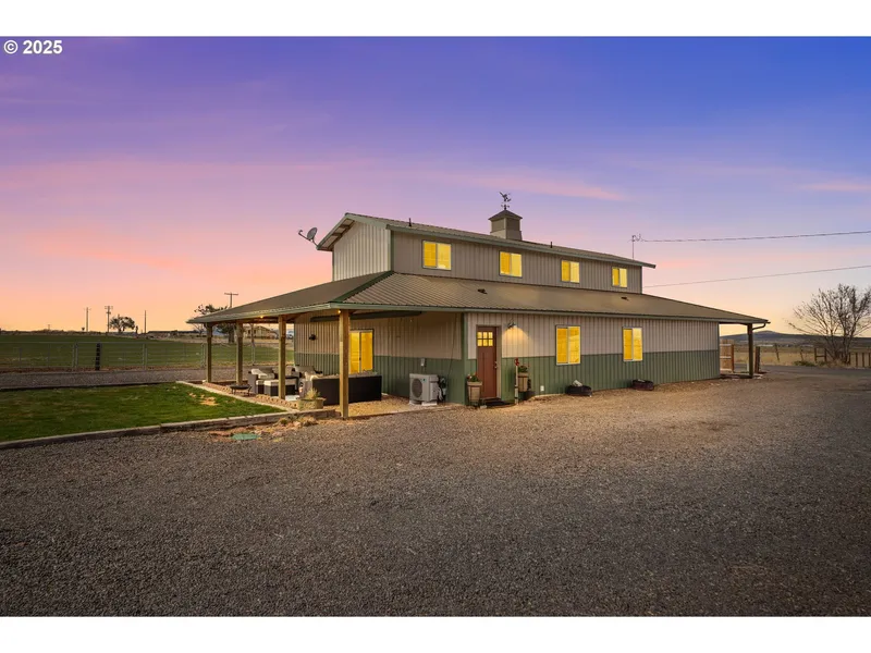 Wonderful opportunity to own a beautiful 47+ Acre property in Central Oregon on the South side of Culver! Exceptional Barn dominium Style home, Converted in 2017 lives large with an open concept, beamed ceilings, stained concrete floors, rustic wood features, Mountain and Pastoral views from a multitude of areas throughout the home! Well-appointed Kitchen offering Stainless appliances, Granite counters, soft-close cabinetry, Bar seating Island and Built-In Pantry. Energy efficient ductless heating and cooling with an added wood pellet fireplace for extra warmth when needed. On the exterior you will find a covered patio area to soak it all in! Property features a Multitude of Structures from an Amazing 72x48 drive through Shop, a 90x60 hayshed, that if desired could be converted to an indoor arena, 90ft fully gated and fenced 5 stall shelter. 43.5 level Irrigated Acres offers an array of ...