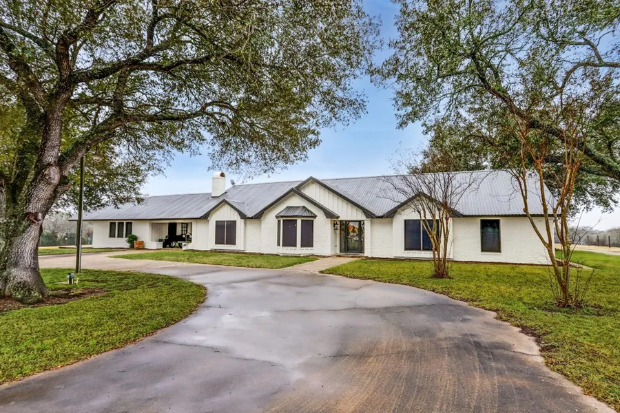 Looking for a getaway from the city? Look no further, this homesite sits on almost 48-acres in the city limits of Industry with an AG EXEMPTION! The main home is a beautiful 3/3 home with two living rooms, formal, casual and outdoor dining areas. It was just remodeled in August 2021. All new plumbing, leveling, paint, floors, and water heaters. Washer, dryer and refrigerator in kitchen all convey! Oversized utility room and garage. 25x25 party room with lots of parking space. Multiple outdoor sitting areas, each with different views. Guest house with open floor plan 1/1. 24 ft pool with deck. Plenty space for storage in the 2 storage buildings. Barn with steel cattle pens with irrigation well.