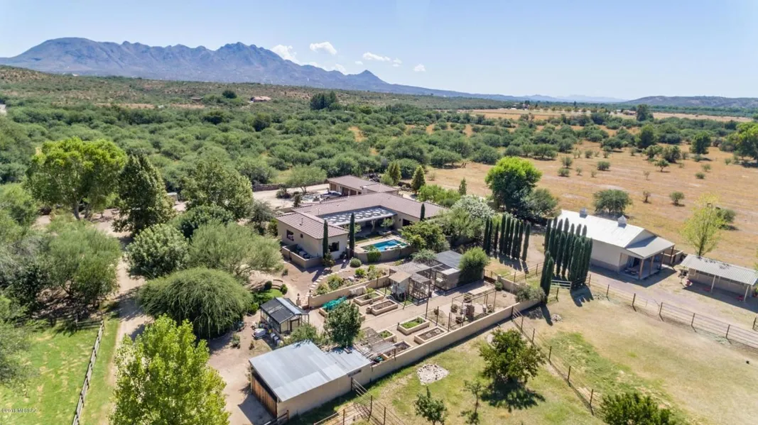 This Custom ranchette is nestled in the lush Santa Cruz River Valley adjoining one of the largest natural Cottonwood/Willow forests in the world and is situated near Tubac, AZ. Enjoy a country lifestyle and the peace and quiet this lovely Hacienda provides and yet you are only a few miles from I-19 with easy access to Nogales or Tucson. The moment you drive through the gated entry you feel the tranquility this lovely home and grounds provide. This home is upgraded in a tasteful and functional way with travertine floors throughout, a recently remodeled gourmet kitchen, multiple indoor and outdoor fireplaces, high ceilings as well as gorgeous expansive patios with lush landscaping, a salt water pool and mature vegetation surrounding the home.