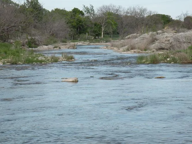 Water. Water is the greatest asset on this ranch. The pretty San Saba River flows for over 4,900 feet along the north side of the ranch. The river has places that are still water for fishing and kayaking, and some nice gentle rapids as well. Most of the river bottom is solid bedrock, making for pleasant wade fishing. A unique feature is a natural ford in the river.