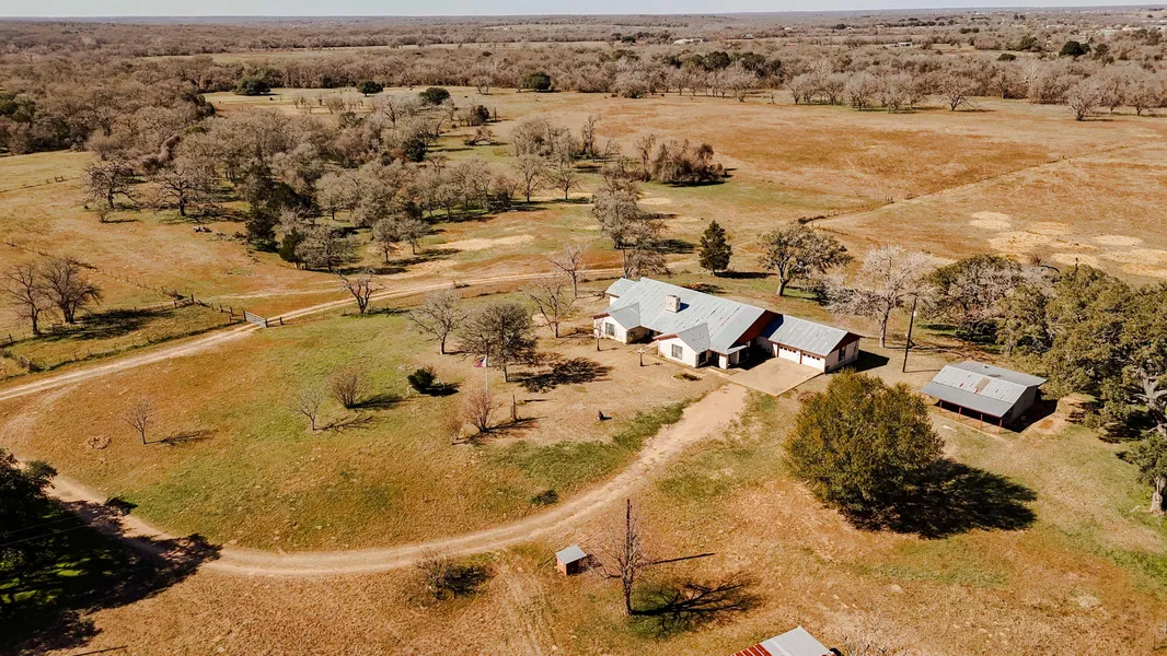 Nestled just outside of Bastrop, Texas, this expansive 112-acre cattle ranch offers the perfect blend of rural tranquility. The centerpiece of the property is a beautiful 3,345 sq ft ranch-style stone home, positioned atop a hill to provide breathtaking panoramic views of the surrounding land.