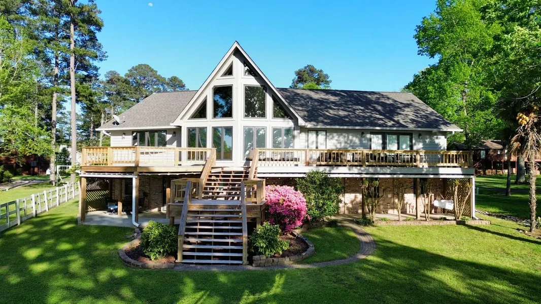 This waterfront home offers some of the most spectacular sunsets you will ever see anywhere on the Tombigbee River. Aliceville Lake is known for its tremendous fishing and watersport opportunities. Rivermont residents own a share of the boat launch, pavilion and playground area. This home is conveniently located to all three. Recent upgrades include the walkway to the boat dock, replaced decking at docks, all new handrails on the decks of the house, and replaced the pressure treated lumber on porches and decks. New stairways on both decks were completed. A new 40' by 40' shop with three roll up, bay doors adds the convenience of storage for all of your boats, equipment and other items. This shop has a 16' x 16' bedroom inside for overflow of guests, or for use as needed. The streets have been upgraded and repaved. The beautiful home consists of 3 spacious bedrooms, a loft bedroom,3.5 lar...