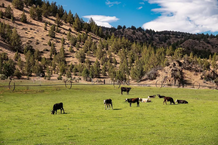 Rural ranch setting on 48.64 acres, ideal for cattle and livestock. Fully fenced and cross-fenced pastures with water rights from West Branch Creek and a large irrigation pond with wheel and hand lines. The 3 bed, 2 bath farmhouse features a spacious open living area with oil monitor heater and wood stove insert, plus a mini split for year-round comfort. Antique cook stove adds charm to the large dining room. Kitchen includes pantry, ample storage, and a generous eating bar. Set up for animals with a small barn, tack room, corrals, hay storage, meat cooler, poultry coop, and fenced orchard and garden. Includes a large insulated/heated shop with 10' door, detached carport, and a multi-use shed for hay or wood. A true turn-key ranch property.