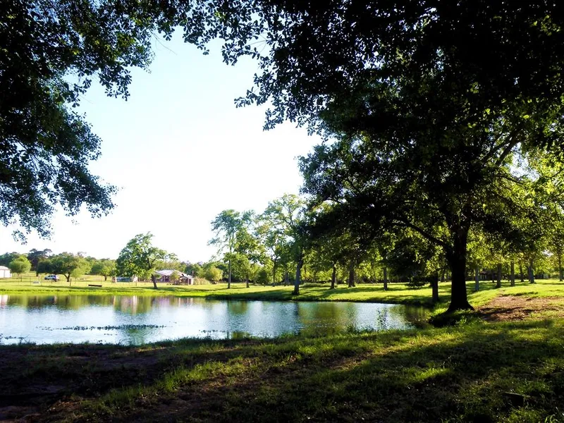 You will know you have arrived at the gated entrance as you immediately experience the beautiful meadow-like appearance with towering live oaks trees and pecan trees dotted throughout. There are open pastures for grazing livestock along with heavily wooded areas towards the back of the property near a seasonally flowing ravine. You can see a picturesque pond from the back porch of the main residence. Property is ideal for a small cattle or a horse operation. Pastures are fenced & cross-fenced with mostly pipe fencing. Includes: Working Pens, Run-In Shelter for Horses, Improved Pastures & more. The wooded area & ravine at the back provides a wildlife friendly habitat.