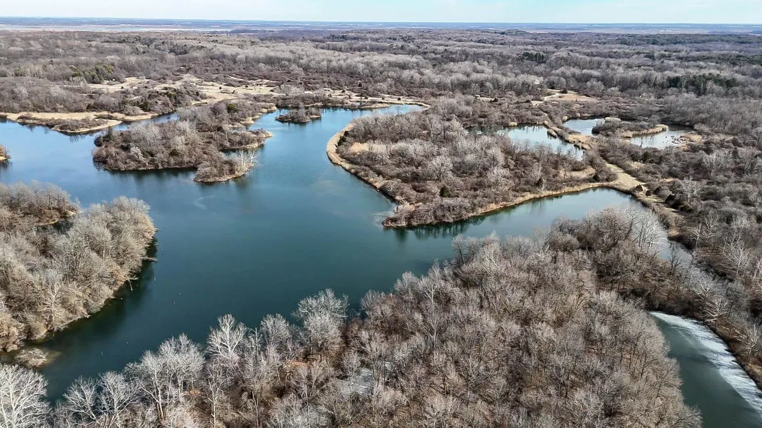 7200 feet of road frontage along County Road 900E. Additional access from County Road 850E. Large main lake is approximately 40 acres. Excellent deer, turkey, fishing, and waterfowl hunting.