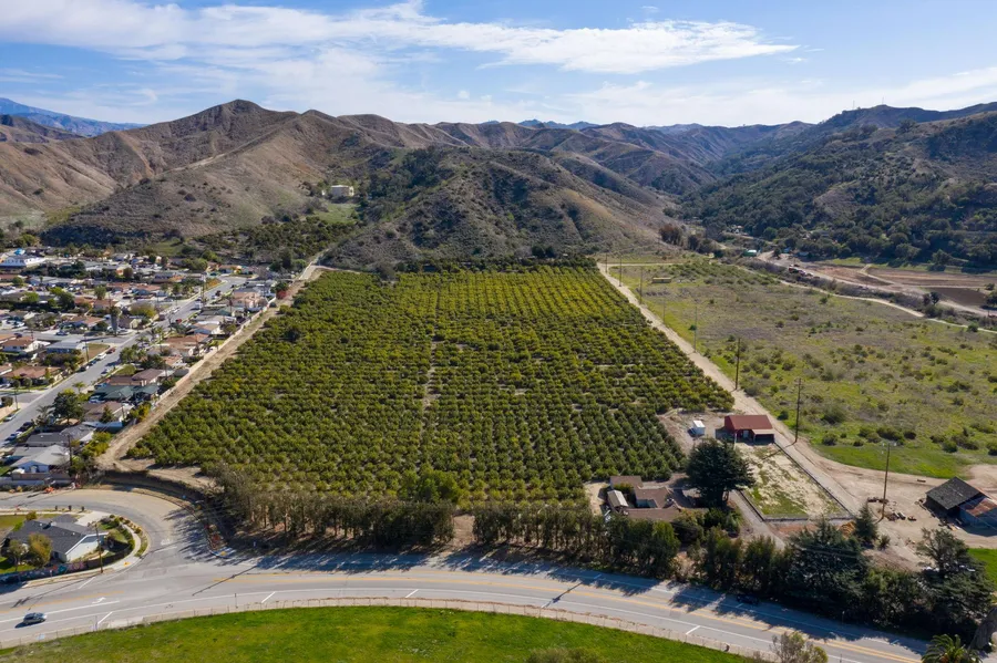 77 acres with 20 level acres of lemons and a 3bd 2ba ranch style home. Convenient access from Hwy 33 on the way to Ojai, North of the Ventura City limits~'Path of Progress' area. Zoned AE (Agriculture Exclusive) yet bordersa residential subdivision to the north and the historic 6500 acre Caada Laraga ranch to the east.