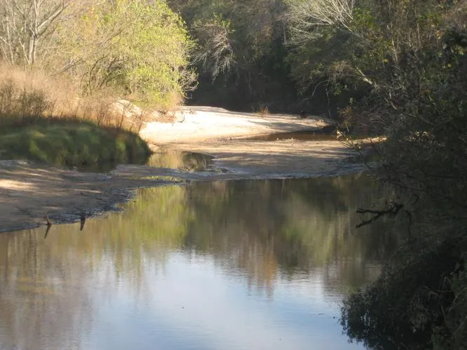 As soon as drive through the electric gate entry you know you have arrived at a special place. A winding limestone driveway leads you through the woods to a very nice 2 or 3 bedroom home nestled on a hill. The home is central A/C and heated and features open kitchen/living room with bar, fireplace, large remodeled bathroom and outdoor wood deck. It is suitable for year-round living or weekend excursions. The terrain consists of large majestic Oak trees,draws and brush, making it a nature lover or hunters paradise. There are several trails for ATVs or hiking throughout the wooded area. Deer, hog, turkeys and other wildlife are abundant. An elevated deer blind and feeder are included in the sale. Additional this property has approximately 2,440 ft of beautiful Sandy Creek frontage which adds a whole new dimension to your outdoor experience. Access is good with approximately 1,7...