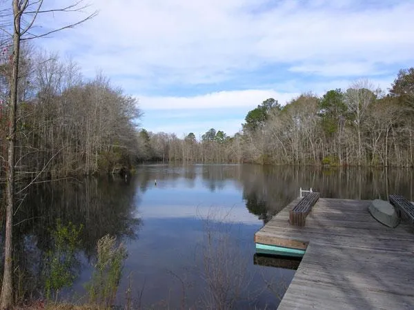 Property sports a spectacular new home with 4,576 sq ft heated area with another 864 sq ft screened porch with large fireplace. This grand fireplace services the porch on one side and helps heat the house on the other side. There are 2 bedrooms & 2 baths with vaulted ceilings covered with natural pine and pine floors. Kitchen has granite counters and connects with den and family area. There are two loft areas that can be used for extra room for guest with a half bath. Also a good size mud room and laundry room. This fantastic house overlooks a 4 acre pond with an incredible view, excellent fishing and from time to time, some pretty good wood duck hunting. A wooden walk leads from the house to the dock on the pond.