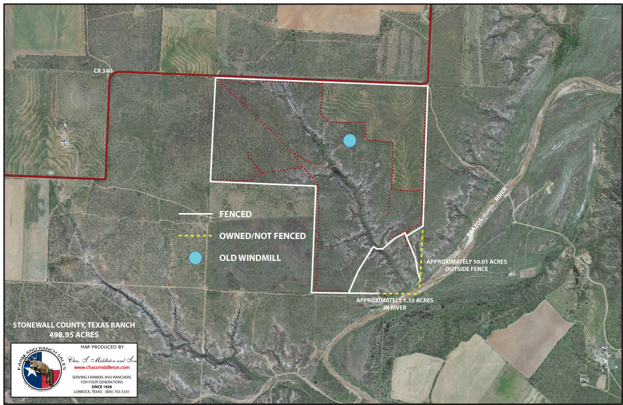 Terrain: The property has a diverse terrain, with a deep draw running through the ranch for approximately one mile from west to southeast. Cover is sometimes dense, being mostly mesquite with scattered hackberry, willows and an occasional cottonwood. The property slopes towards the Brazos River. The property has access on the river. The river bottom has some salt cedar and mesquite. This property has not been grazed in several years. Native grasses are in good overall condition considering drought conditions.